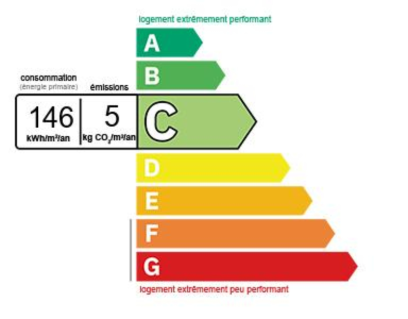 - consommation en énergie primaire : 146 kWhEP / m² / an