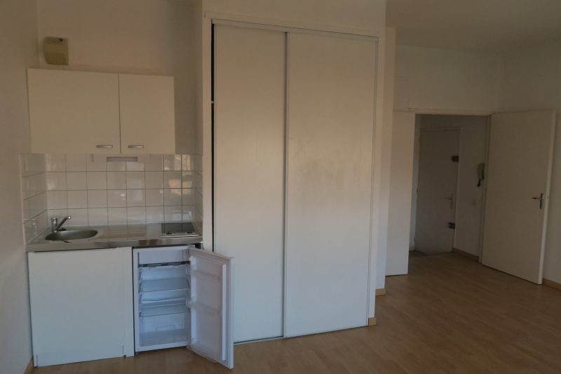 Entrée, sol parquet. Salle de séjour, sol parquet, avec kitchenette équipée incorporée à la salle de séjour. Placard de rangement. Chambre, sol parquet, avec placard de rangement. Salle de bains, w-c indépendant, sol lino.
