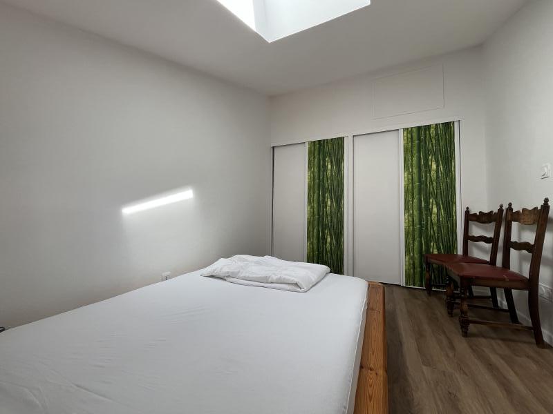 En duplex, accessible depuis la salle de séjour par un escalier : chambre, sol parquet, éclairée par vélux + vide sur salle de séjour.